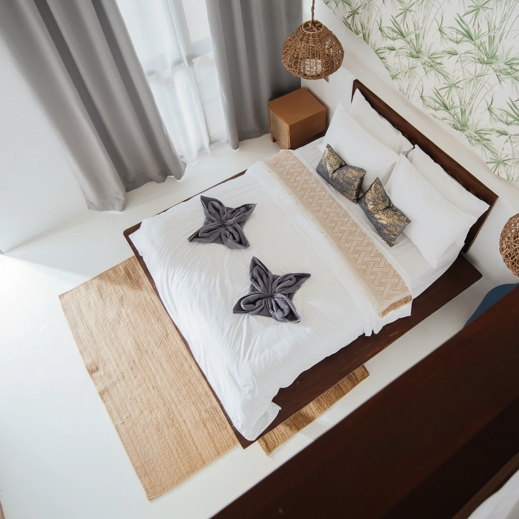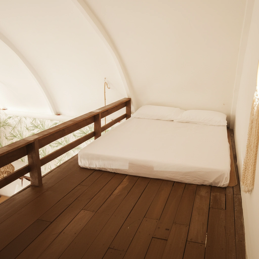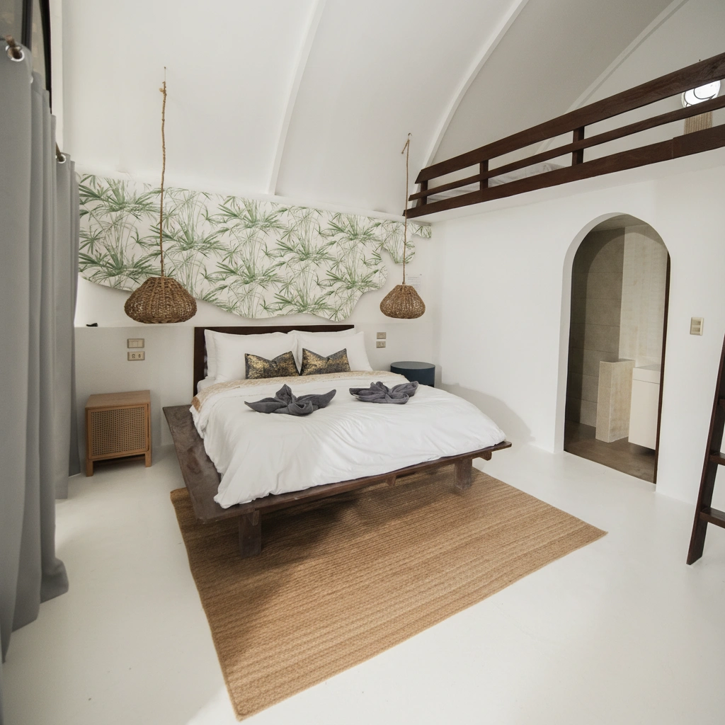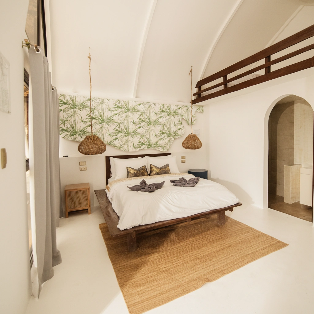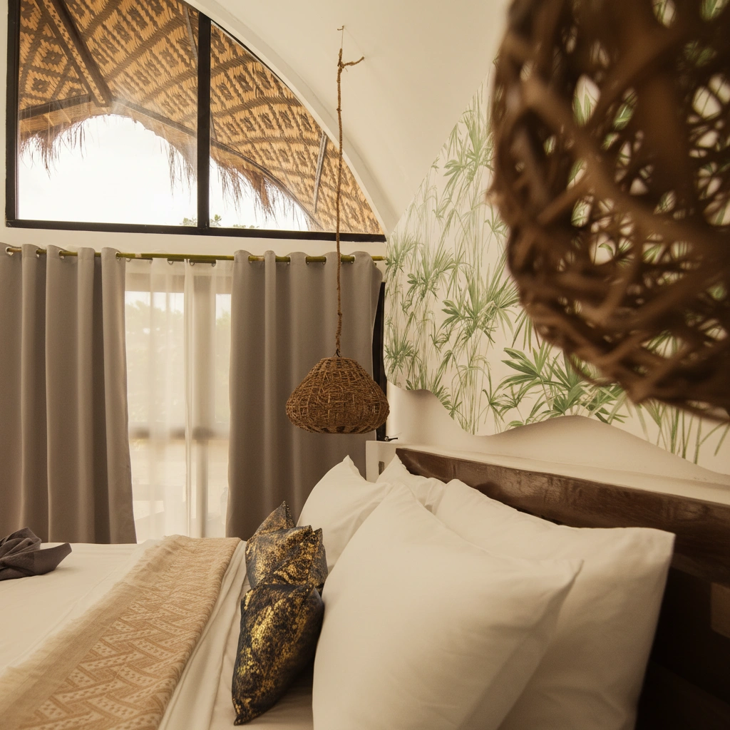Unwind in our Beach Bungalow Family, a slightly more spacious version of our standard bungalow, designed for extra comfort. With high ceilings and large windows, natural light fills the space, creating a bright and airy atmosphere.